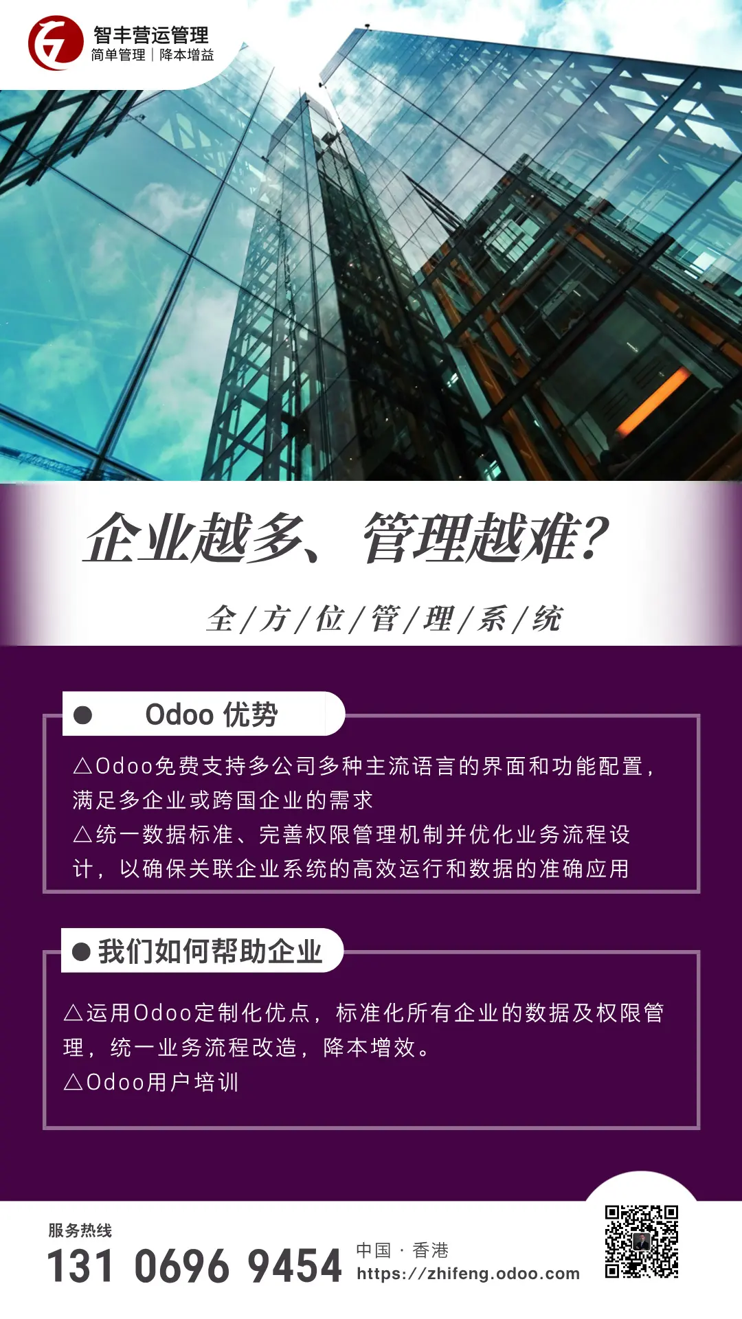 Odoo是一个集成多个功能模块的综合性信息系统,旨在满足服务行业企业的多元化、个性化需求。通过项目管理信息化手段,跟进服务,核算工时等,提供科学的数据支持和决策依据。